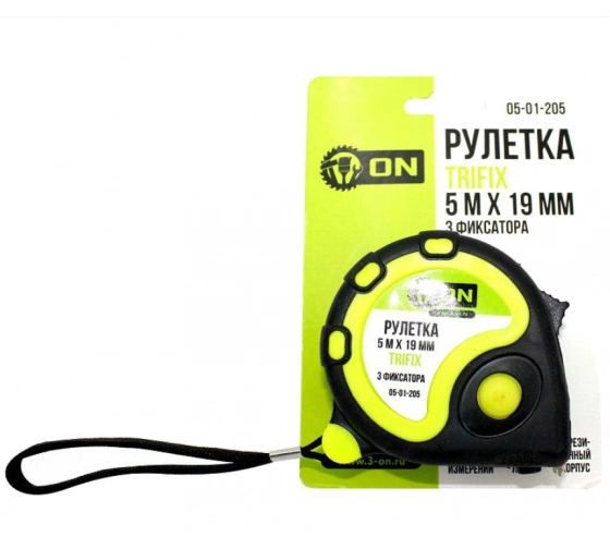 Описание Рулетка TRIFIX 5м х 19мм, обрезиненный корпус, 3 фиксатора